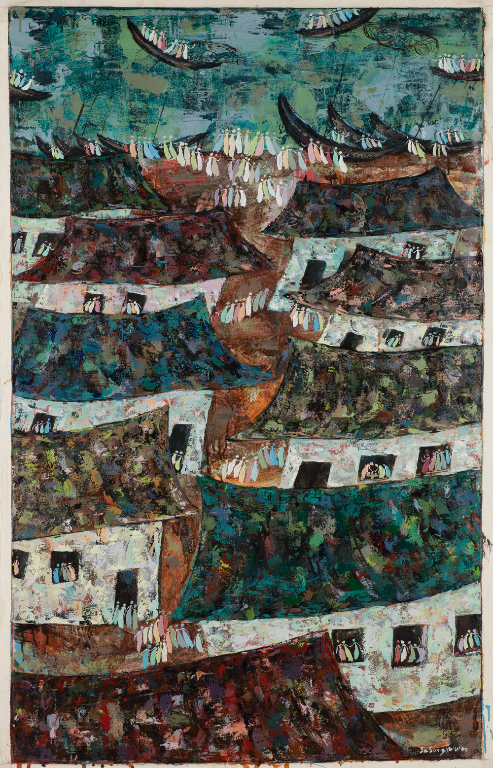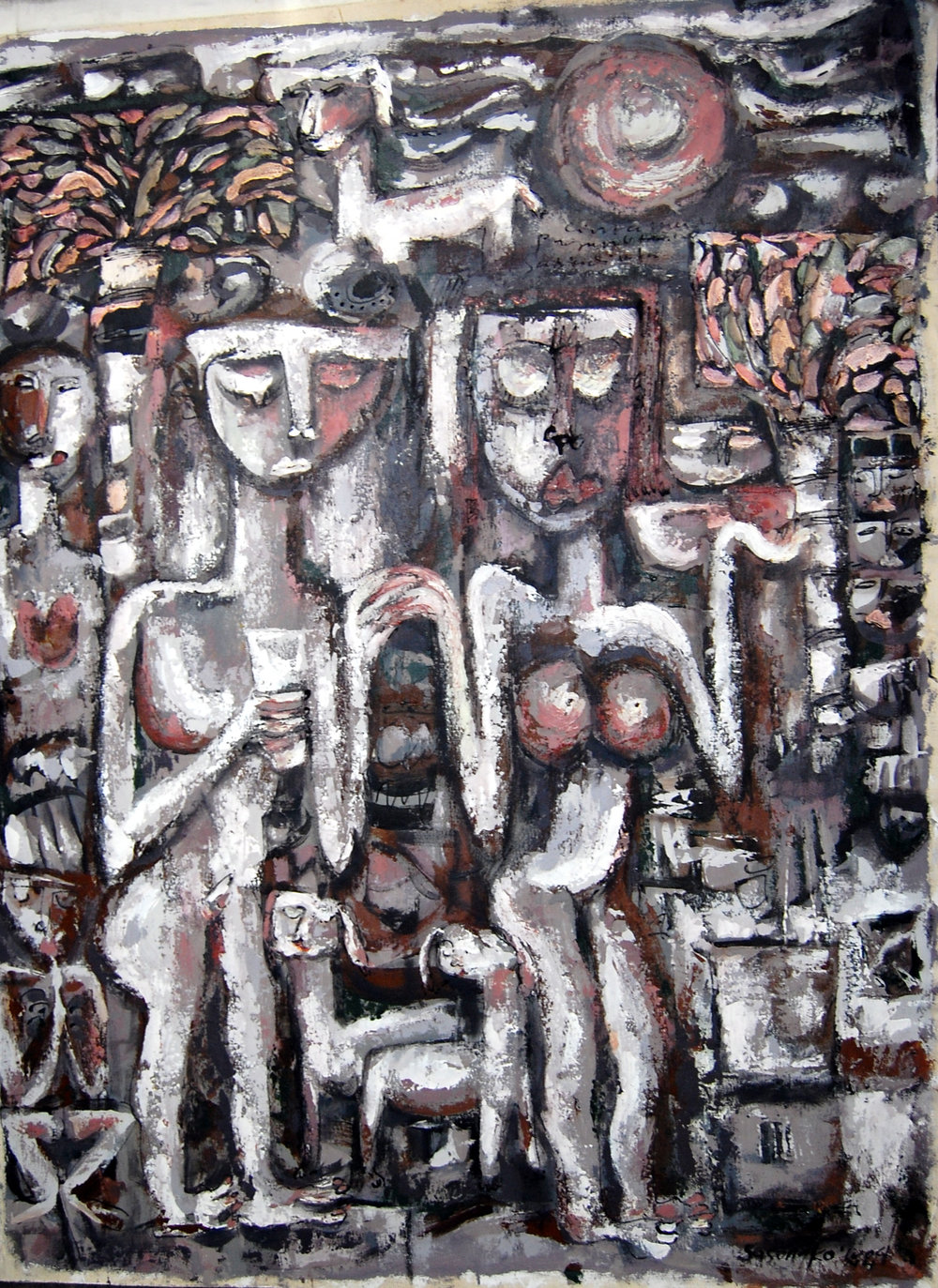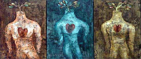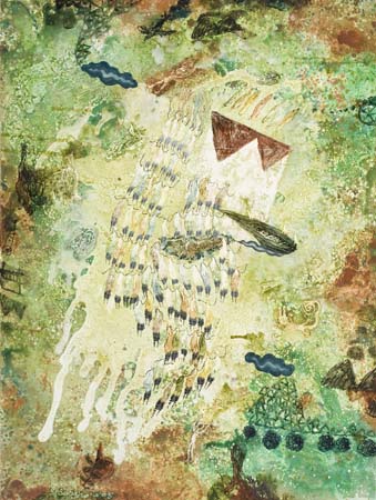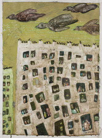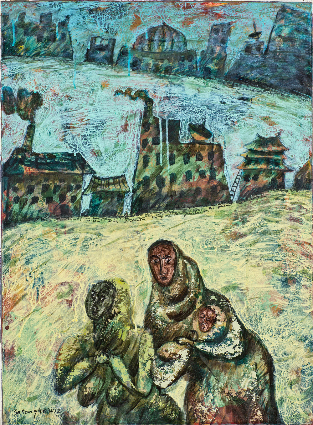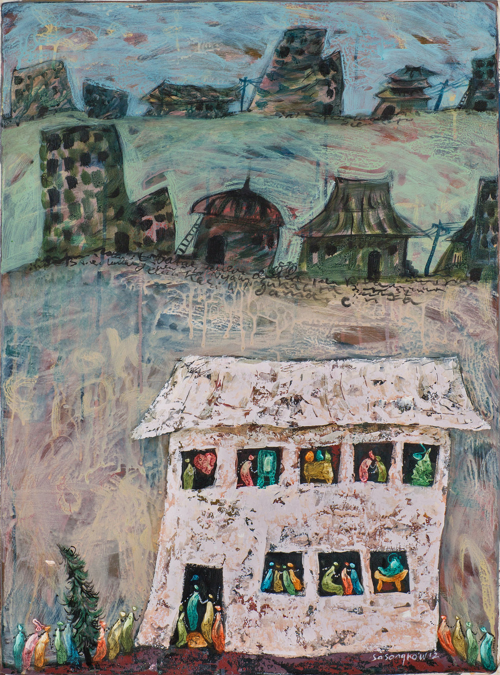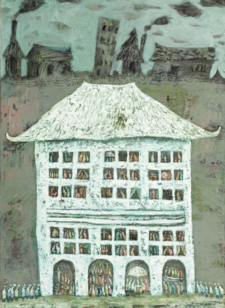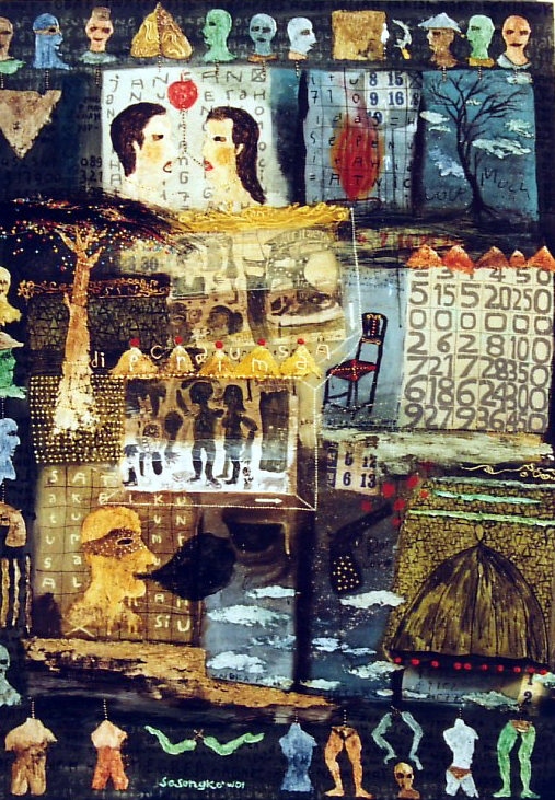 He has exhibited in Asia, Europe and the United States in the six years since, and continues to be a very prolific artist. Unlike many Christian artists, Sasongko does not depict traditional Christian iconography in the idioms or styles of his native country. His paintings and drawings are expressions of life as he experiences it, and they are often shaped by the religious conflicts taking place within Indonesia. His experiences as artist in residence at OMSC for a year in 2004-2005 were also influential, as he was able to visit some of the great museums of art in Chicago, Boston and New York.
