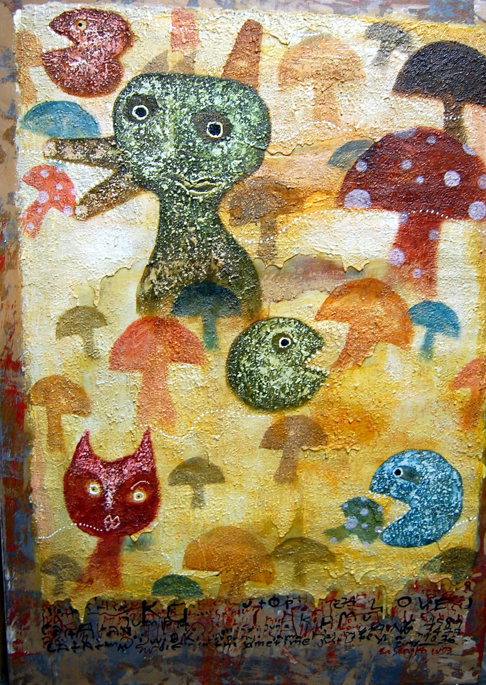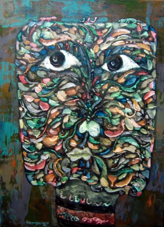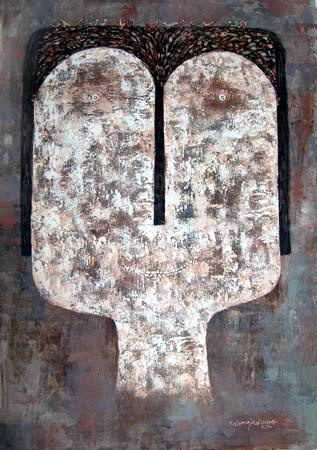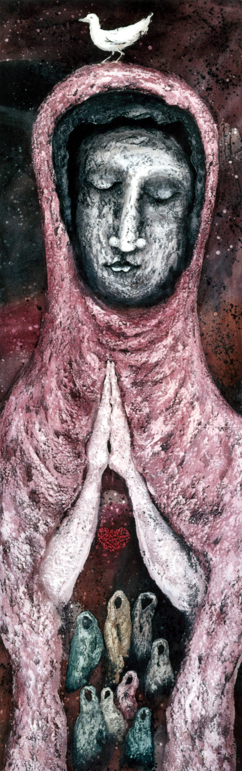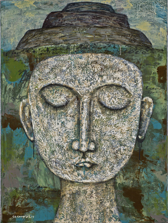 His art functions within a framework of love and faith, but this does not prevent him from depicting harsh realities, nor from offering cultural and political critique. His work has met with some opposition in his homeland, and he freely admits that being a Christian and an artist in Indonesia is not easy. It is also difficult to express abstract theological concepts visually, but he strives to do so nonetheless, as one can discern from the titles of his many works. Wisnu continues to be involved with the ACAA (Asian Christian Art Association) and to exhibit internationally. He was one of five artists chosen for the Summer of 2007 exhibition “The Christian Story: Five Asian Artists Today,” held at the Museum of Biblical Art (MOBIA) in New York City.