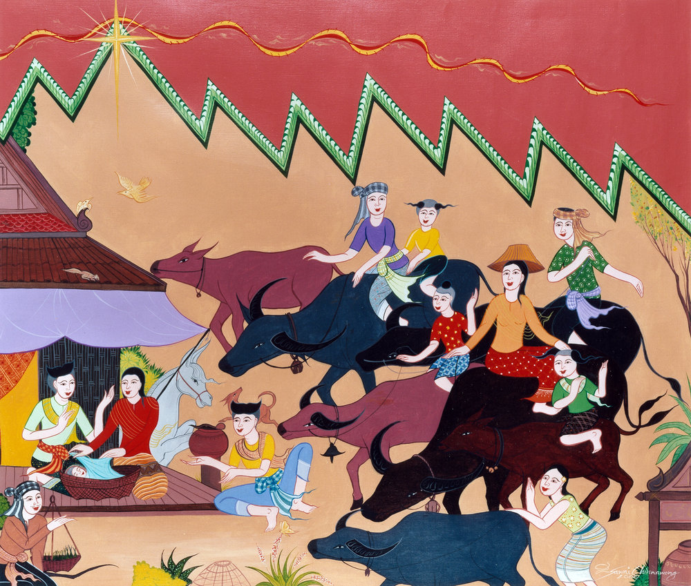 My work represents influences from many styles…I believe Jesus Christ is present in every culture, and I have chosen to celebrate his presence in our lives through Thai traditional cultural forms. My belief is that Jesus did not choose just one people to hear his Word, but chose to make his home in every human heart. And just as his Word may be spoken in every language, so the visual message can be shared in the beauty of the many styles of artistry around the world.