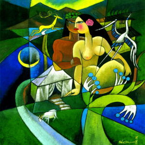 Likewise, many people would probably be surprised to hear that today’s painting, entitled “Song of Solomon,” is firmly grounded in Scripture. It doesn’t look like the sort of thing that would find its way into a stained-glass window in most churches. It’s far too racy for many traditional Christian sensibilities.